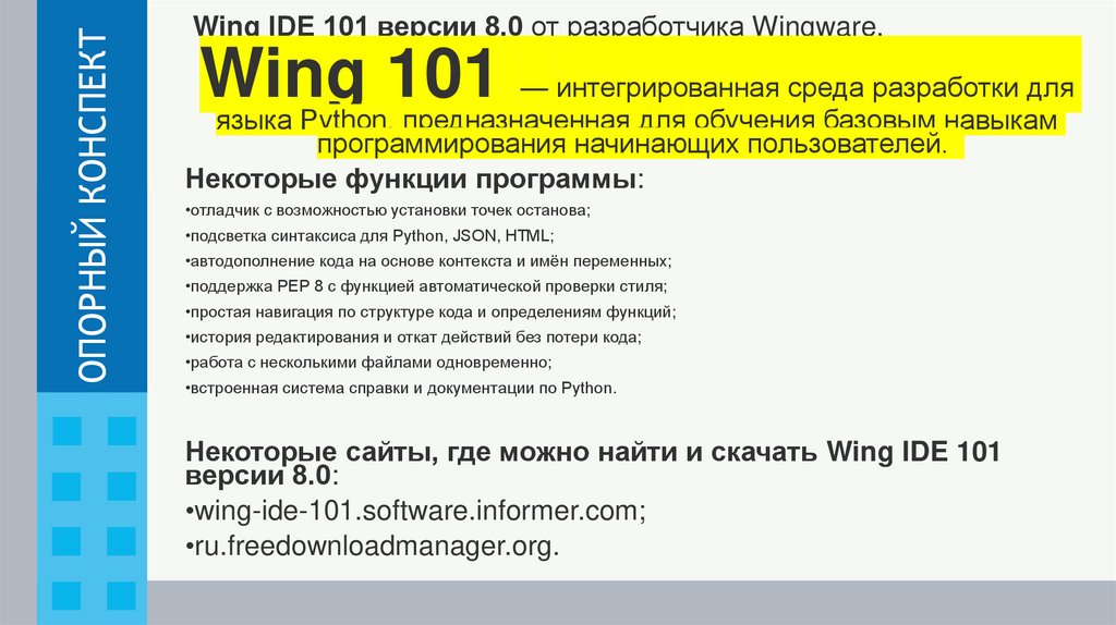 Некоторые сайты, где можно найти и скачать Wing IDE 101