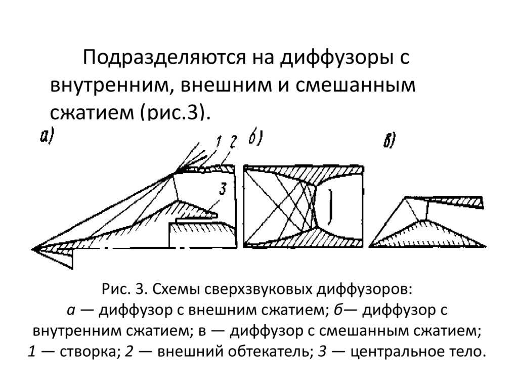 Рис. 3. Схемы сверхзвуковых диффузоров: