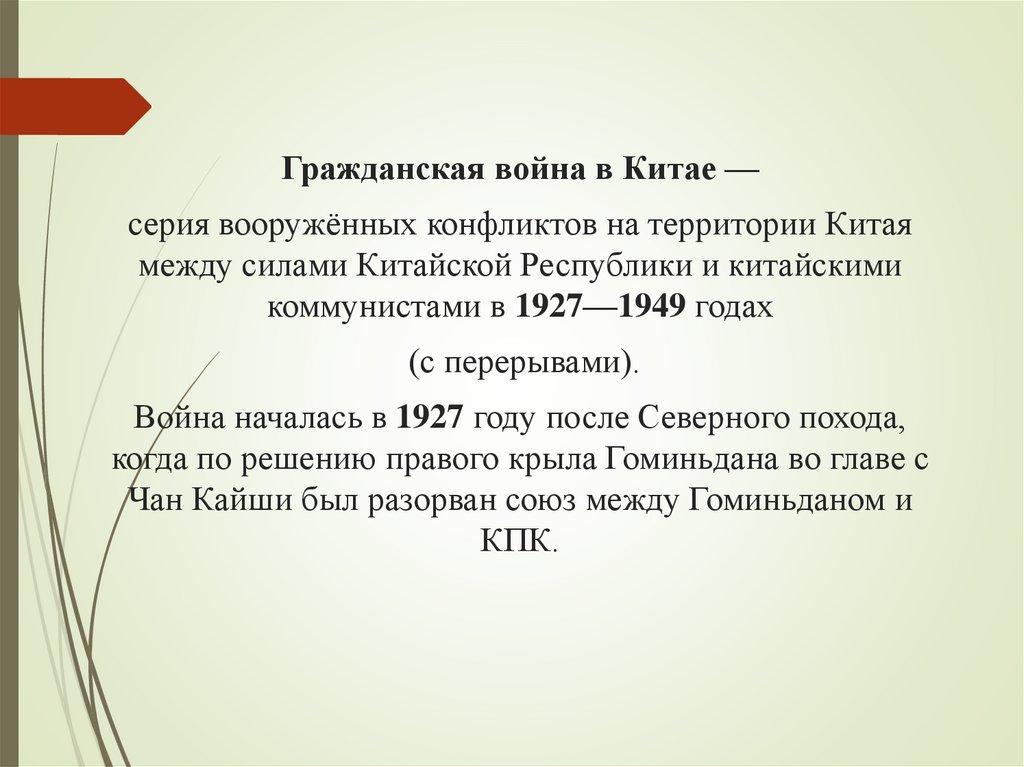 Гражданская война в Китае —серия вооружённых конфликтов на территории Китая