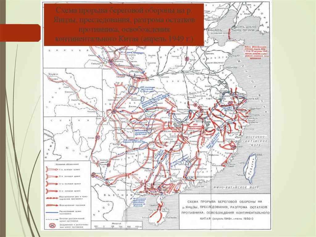Схема прорыва береговой обороны на р.Янцзы, преследования, разгрома остатков