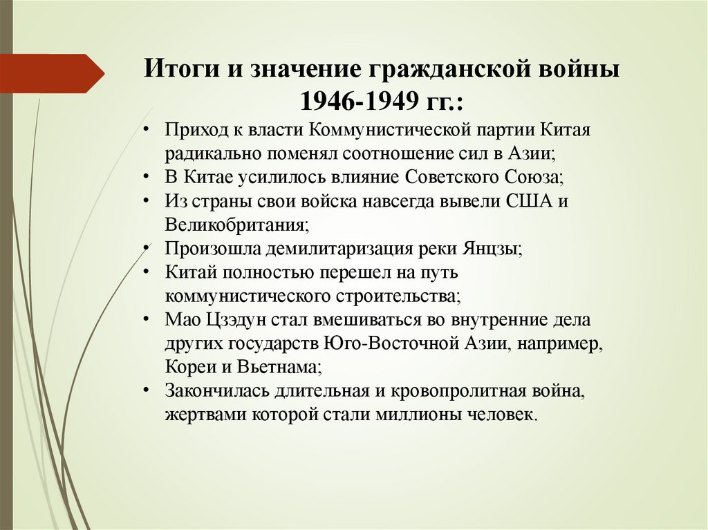 Итоги и значение гражданской войны1946-1949 гг.: