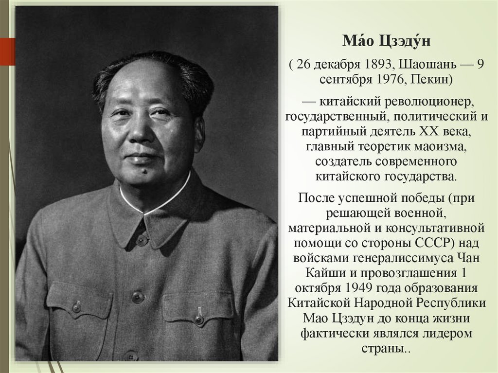 Ма́о Цзэду́н( 26 декабря 1893, Шаошань — 9