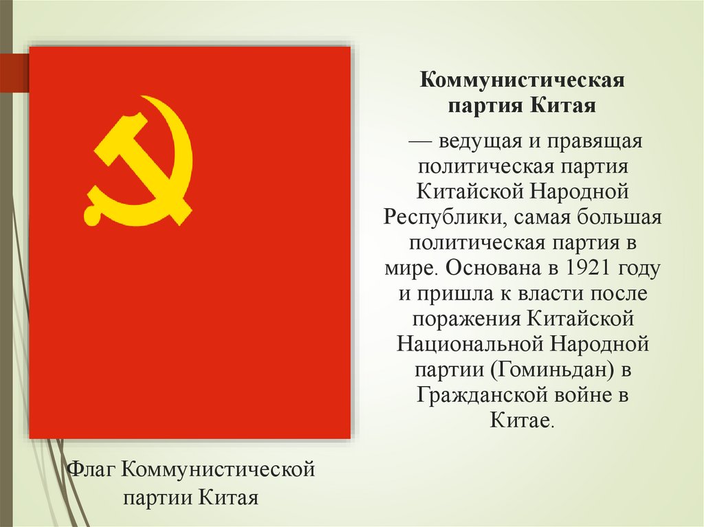 • Приход к власти Коммунистической партии Китая