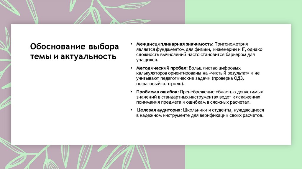 • Междисциплинарная значимость: Тригонометрия