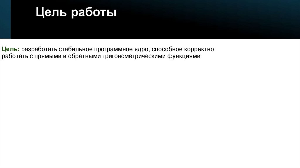 Цель работыЦель: разработать стабильное программное ядро, способное корректно