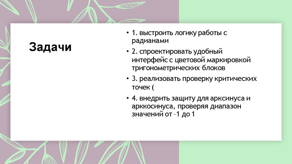 Задачи• 1. выстроить логику работы с