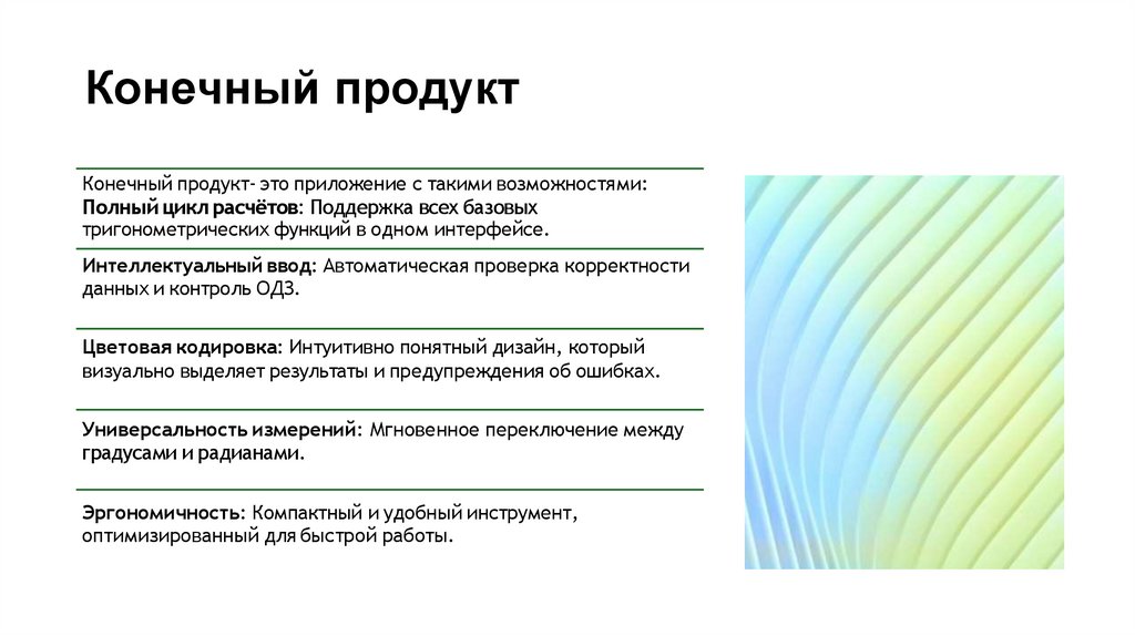 Конечный продуктКонечный продукт- это приложение с такими возможностями: