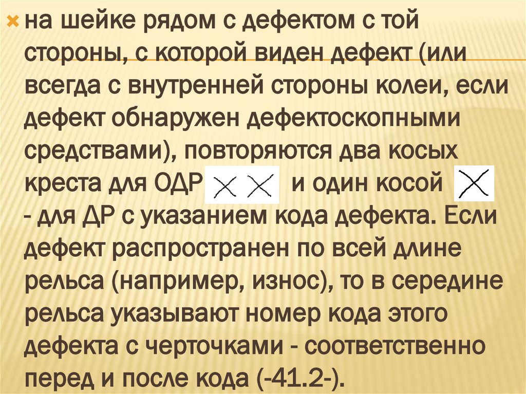 2. ДР и ОДР, выявленные при дефектоскопном или другом контроле, маркируются следующим образом: