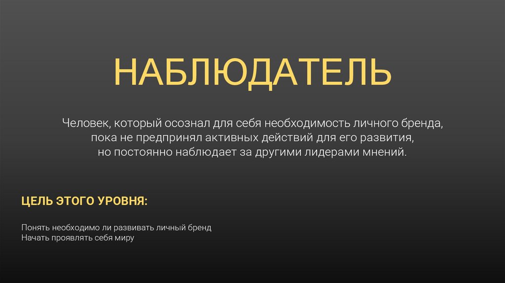 НАБЛЮДАТЕЛЬЧеловек, который осознал для себя необходимость личного бренда,