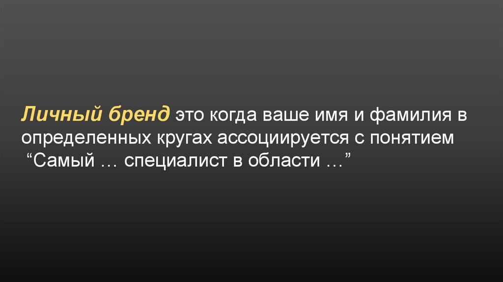 Личный бренд это когда ваше имя и фамилия вопределенных кругах ассоциируется с понятием