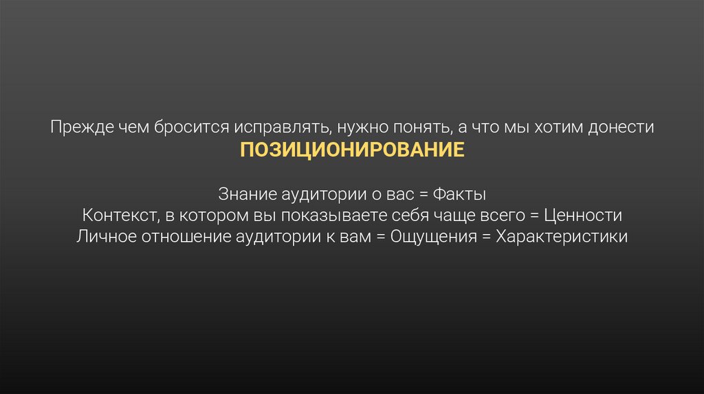 Прежде чем бросится исправлять, нужно понять, а что мы хотим донестиПОЗИЦИОНИРОВАНИЕ