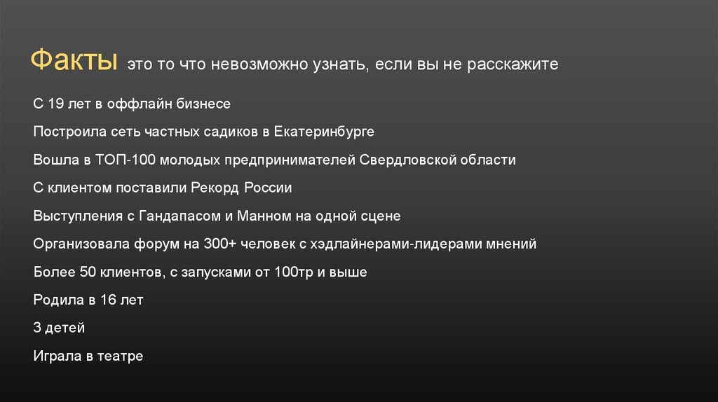 Факты это то что невозможно узнать, если вы не расскажитеС 19 лет в оффлайн бизнесе