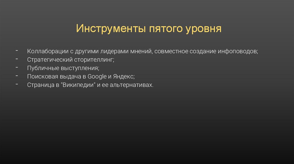 Инструменты пятого уровня-