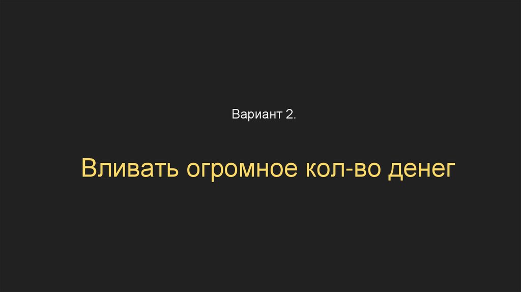 Вариант 2.Вливать огромное кол-во денег