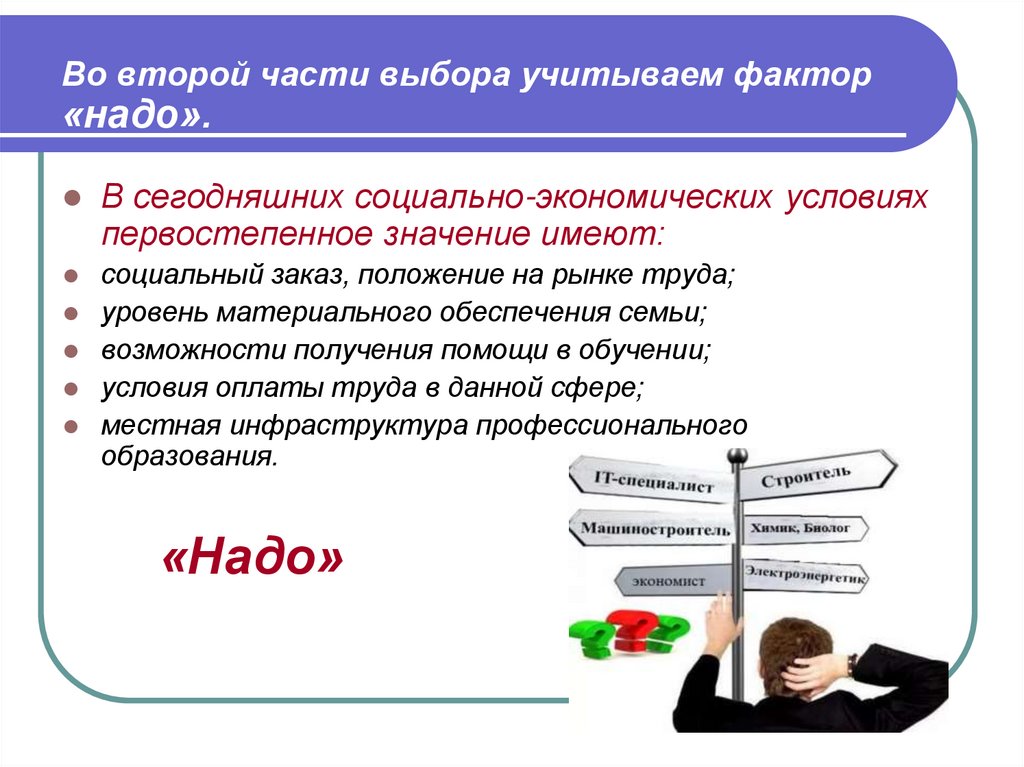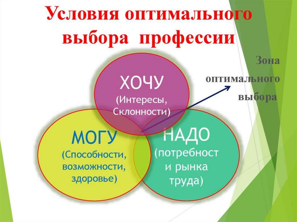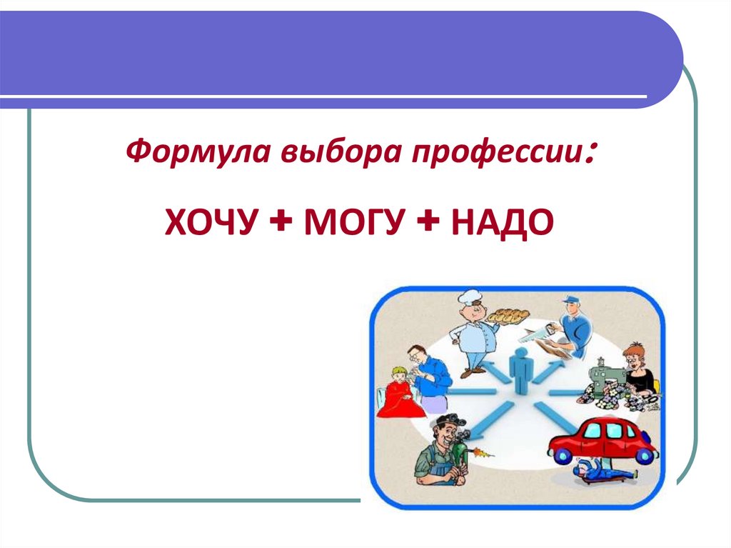 Формула выбора профессии:ХОЧУ + МОГУ + НАДО
