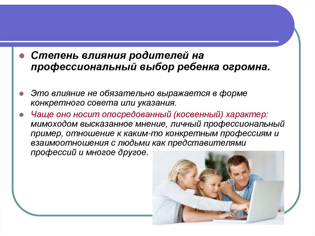 Степень влияния родителей напрофессиональный выбор ребенка огромна.