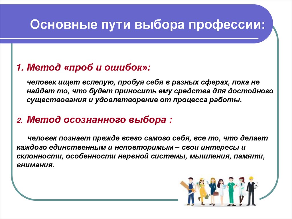 Основные пути выбора профессии:1. Метод «проб и ошибок»: