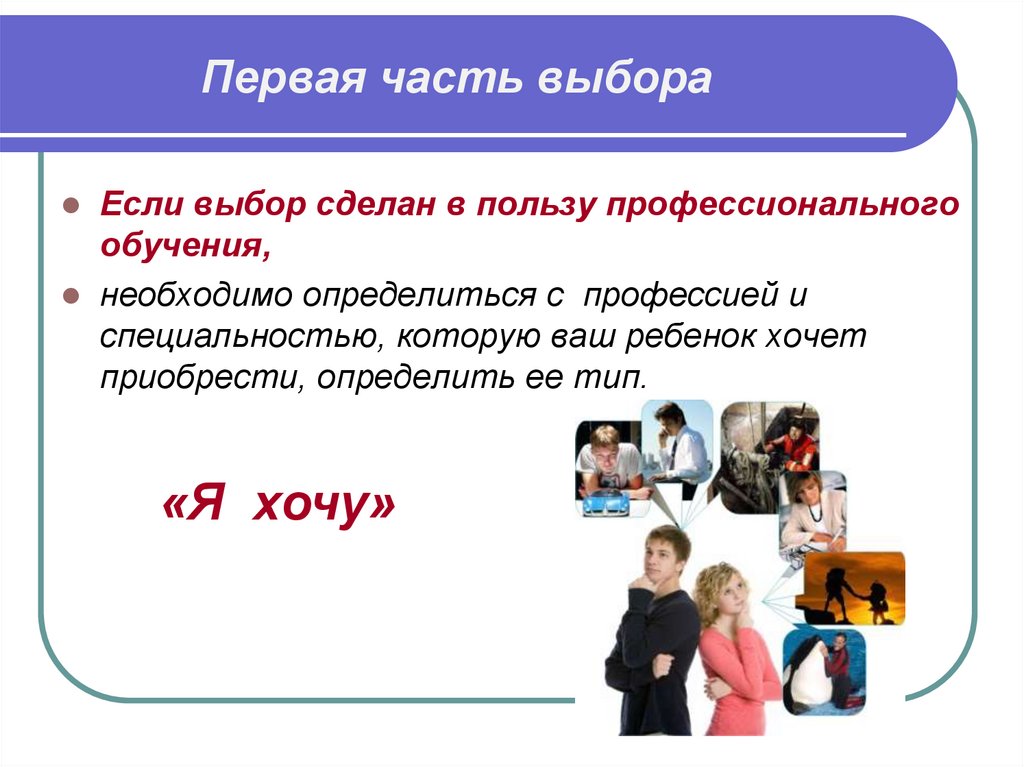 Первая часть выбораЕсли выбор сделан в пользу профессионального