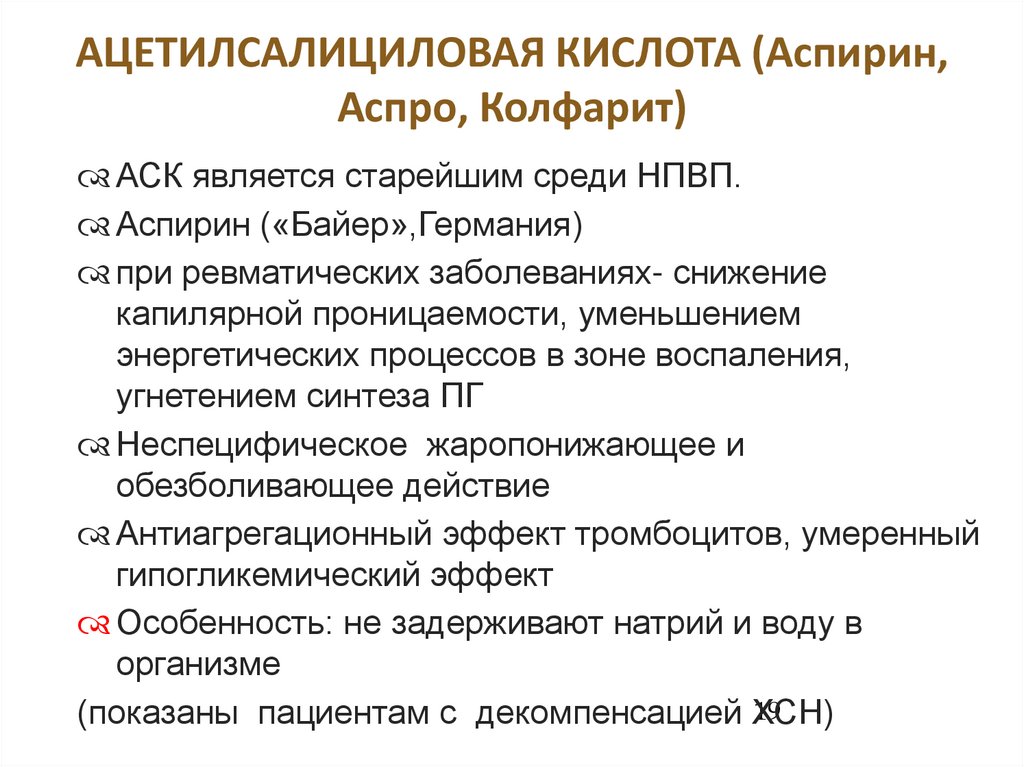 аспирин;