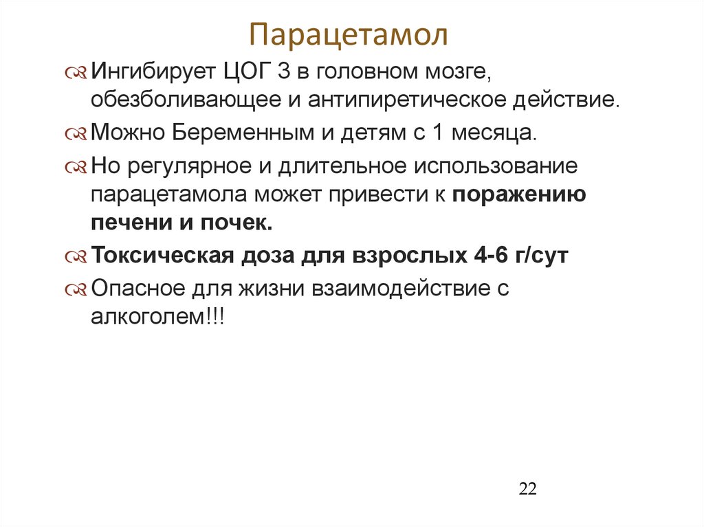 Ингибиция ЦОГ -3 парацетамолом жаропонижающая, анальгетическая