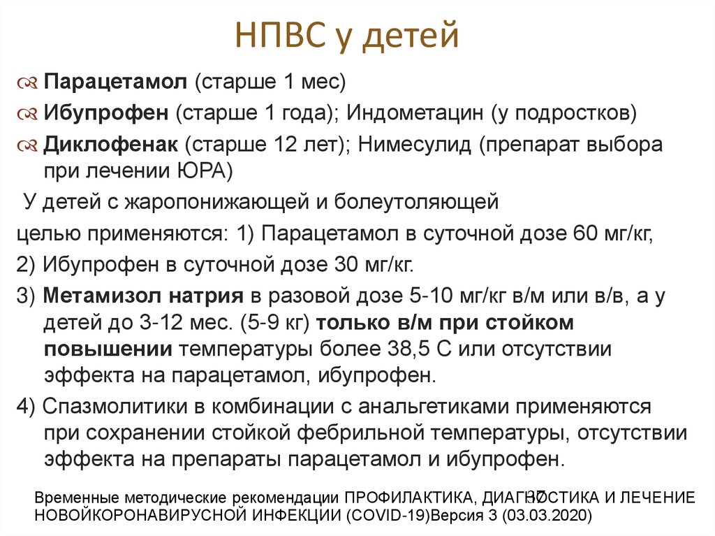 целью применяются: 1) Парацетамол в суточной дозе 60 мг/кг,