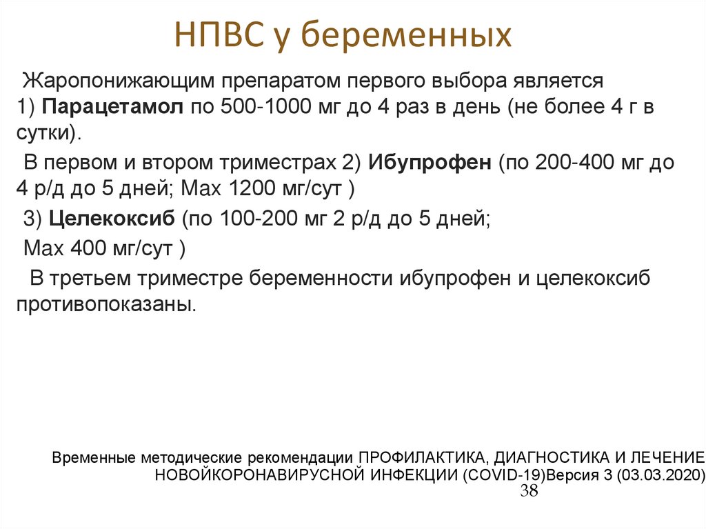 НПВС у беременныхЖаропонижающим препаратом первого выбора является