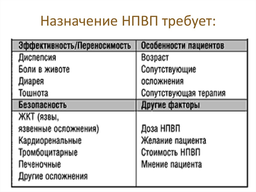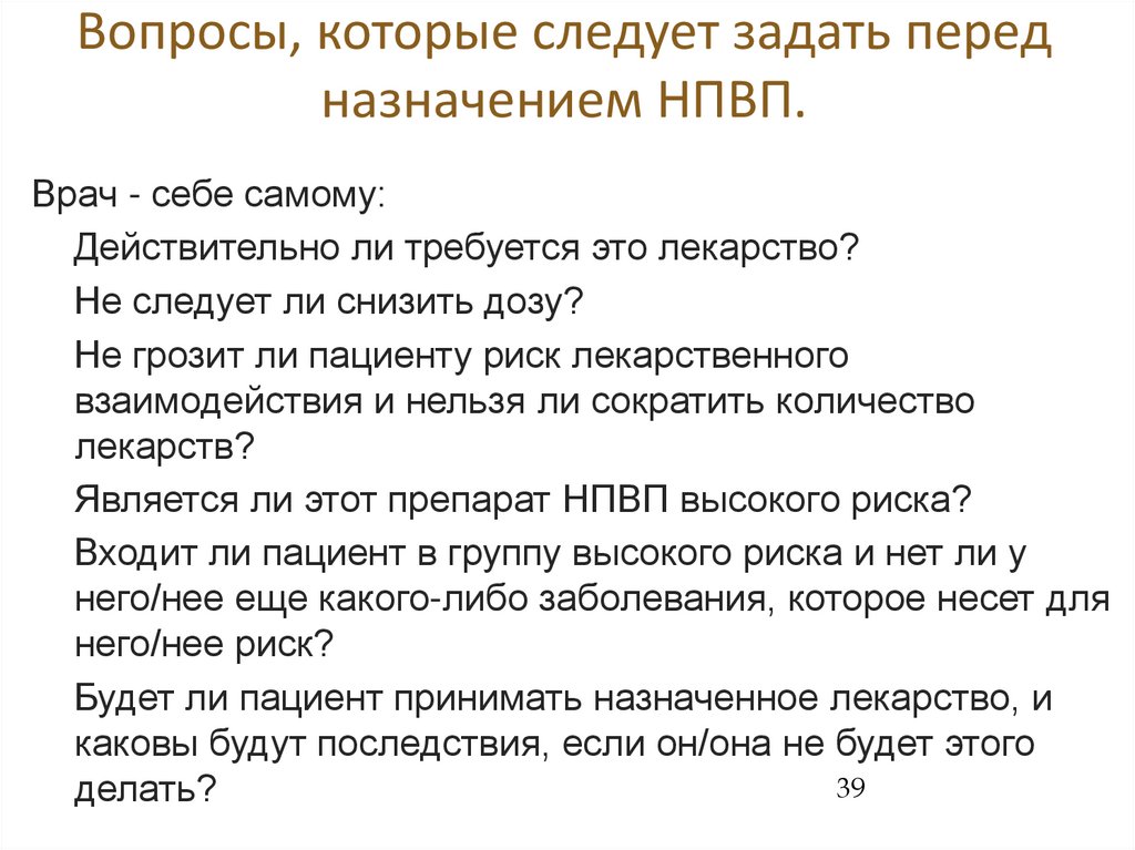 Вопросы, которые следует задать передназначением НПВП.