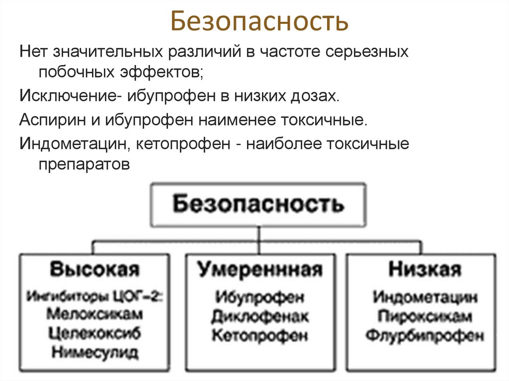 Аспирин и ибупрофен наименее токсичные.