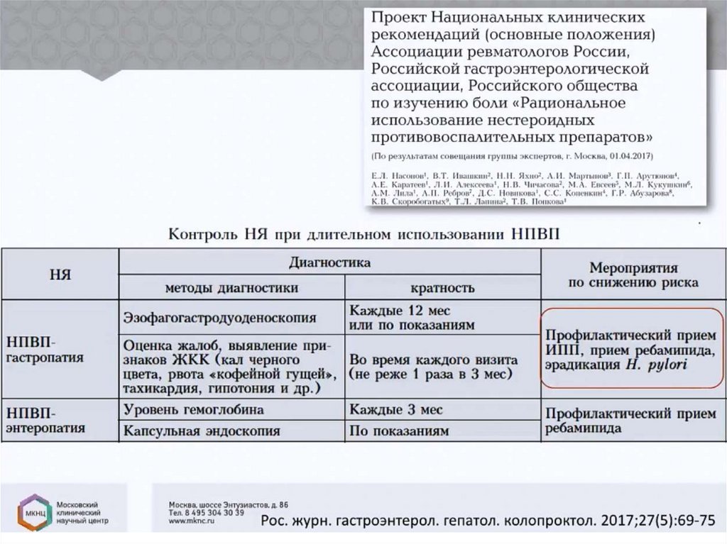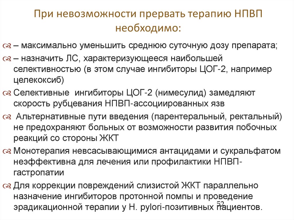 При невозможности прервать терапию НПВПнеобходимо: