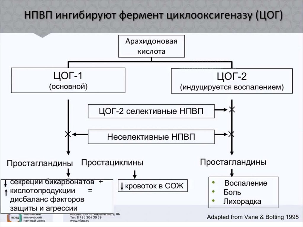 Ингибиция ЦОГ–1 – развития побочных
