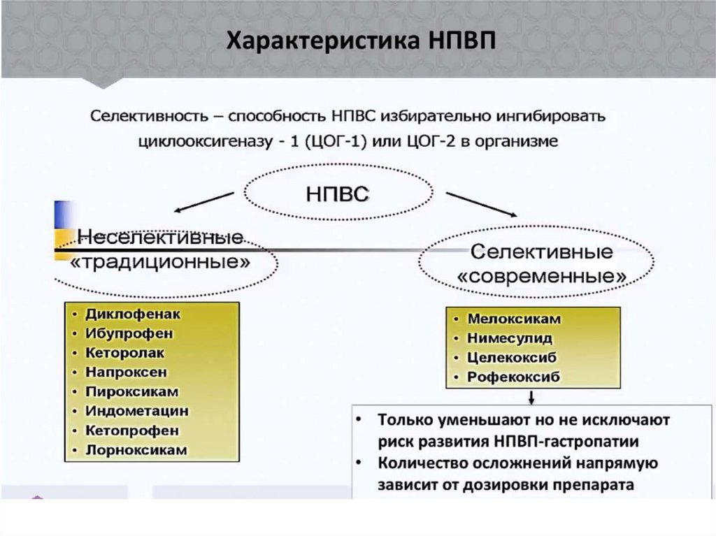 селективностью (в этом случае ингибиторы ЦОГ-2, например