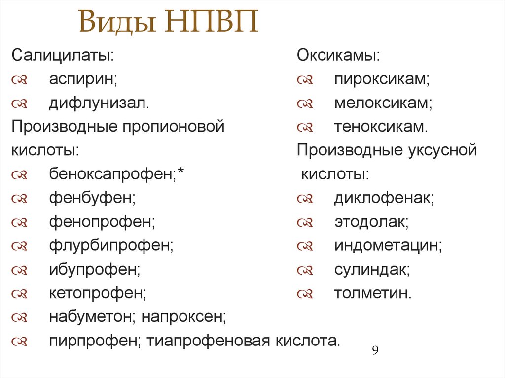 Виды НПВПСалицилаты: