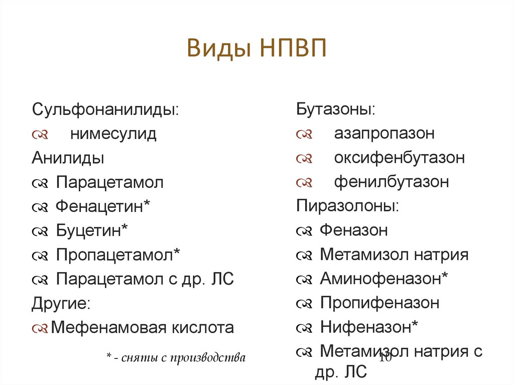 Виды НПВПСульфонанилиды: