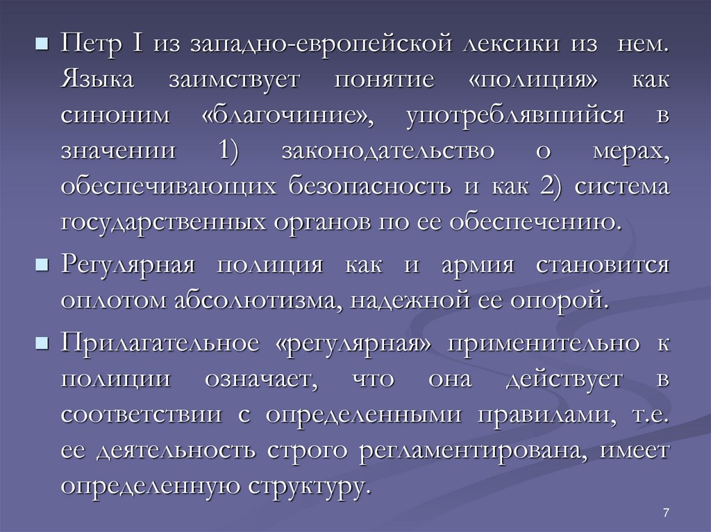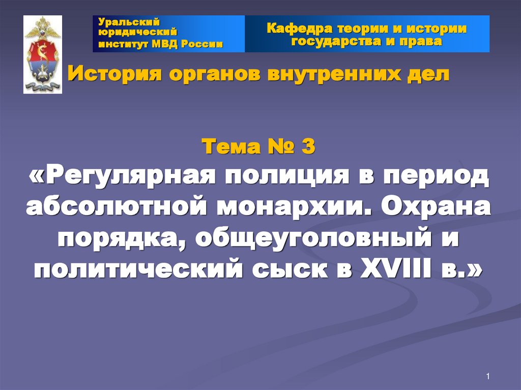1. История органов внутренних дел Тема № 3 «Регулярная полиция в период абсолютной монархии. Охрана порядка, общеуголовный и
