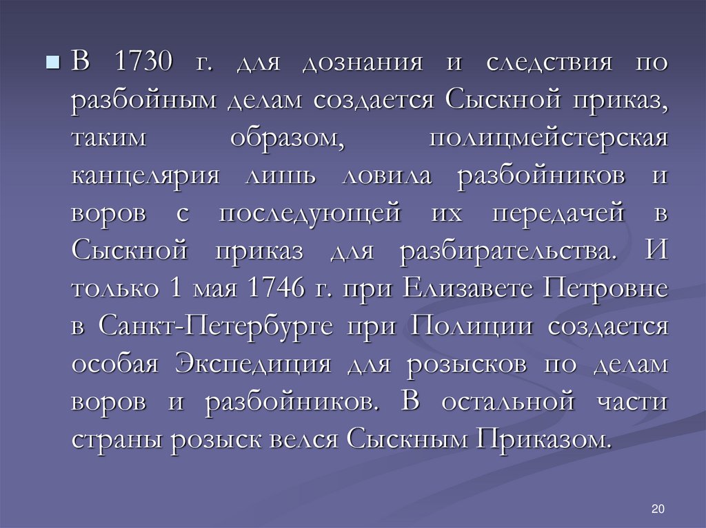 21 февраля 1762 г. Петр III упразднил КанцеляриюТайных розыскных дел и вместо нее создал Тайную