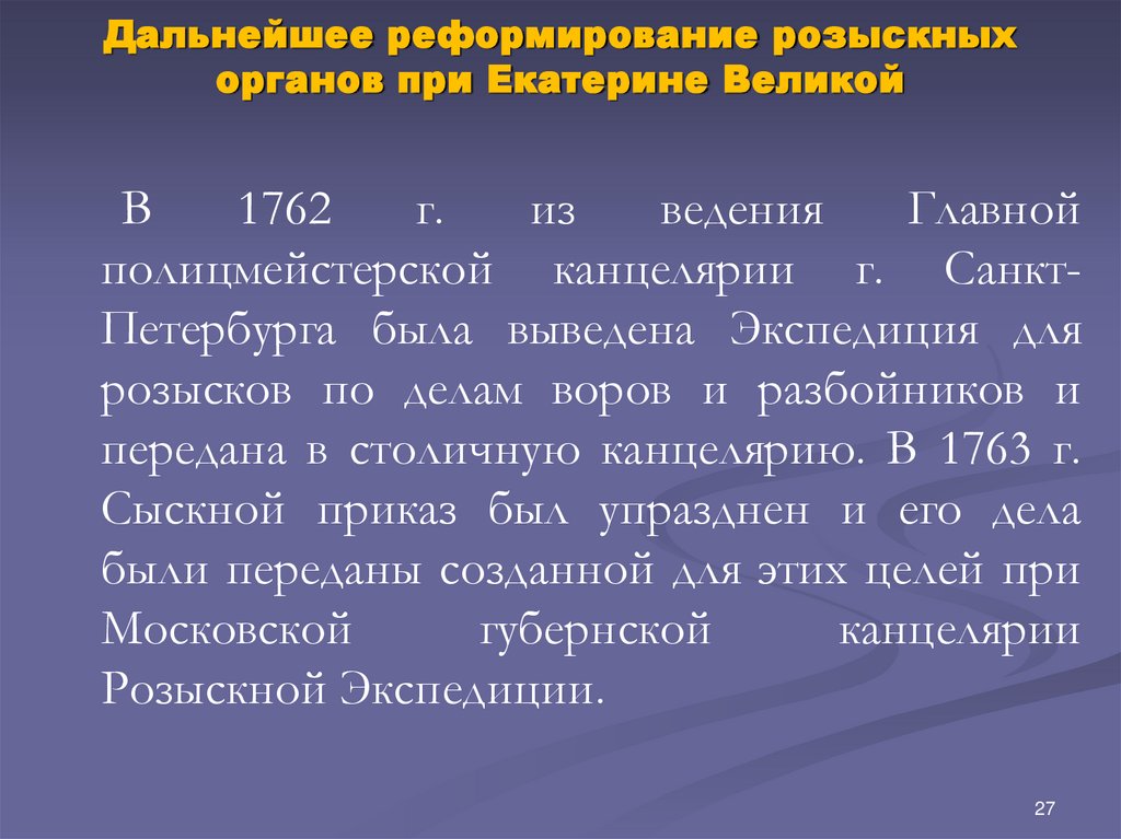 В октябре 1762 г. Екатерина II подчинила Экспедицию