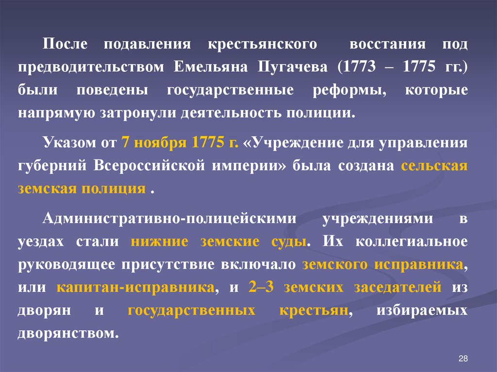 31. Дальнейшее реформирование регулярной полиции при Екатерине Великой