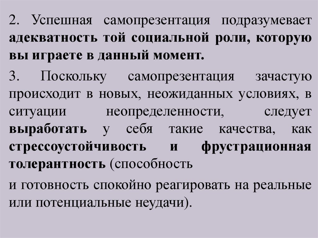 2. Успешная самопрезентация подразумеваетадекватность той социальной роли, которую