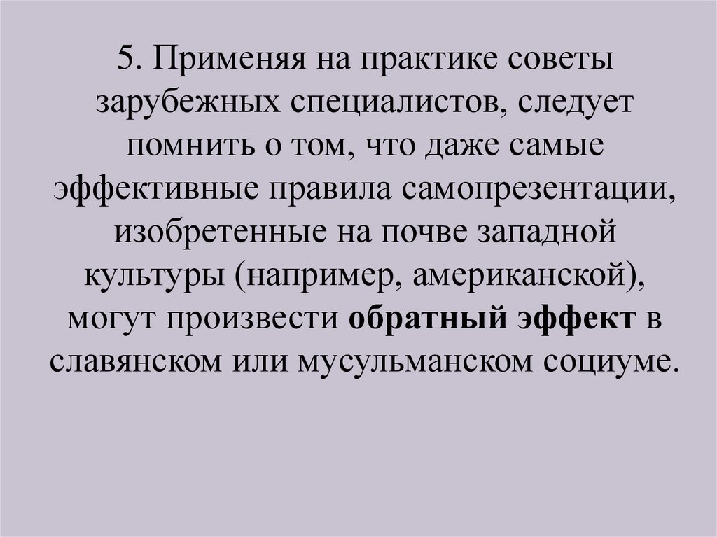 5. Применяя на практике советызарубежных специалистов, следует