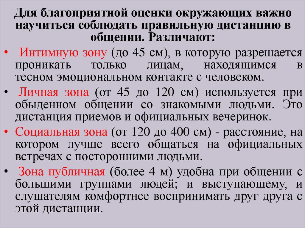 Для благоприятной оценки окружающих важнонаучиться соблюдать правильную дистанцию в
