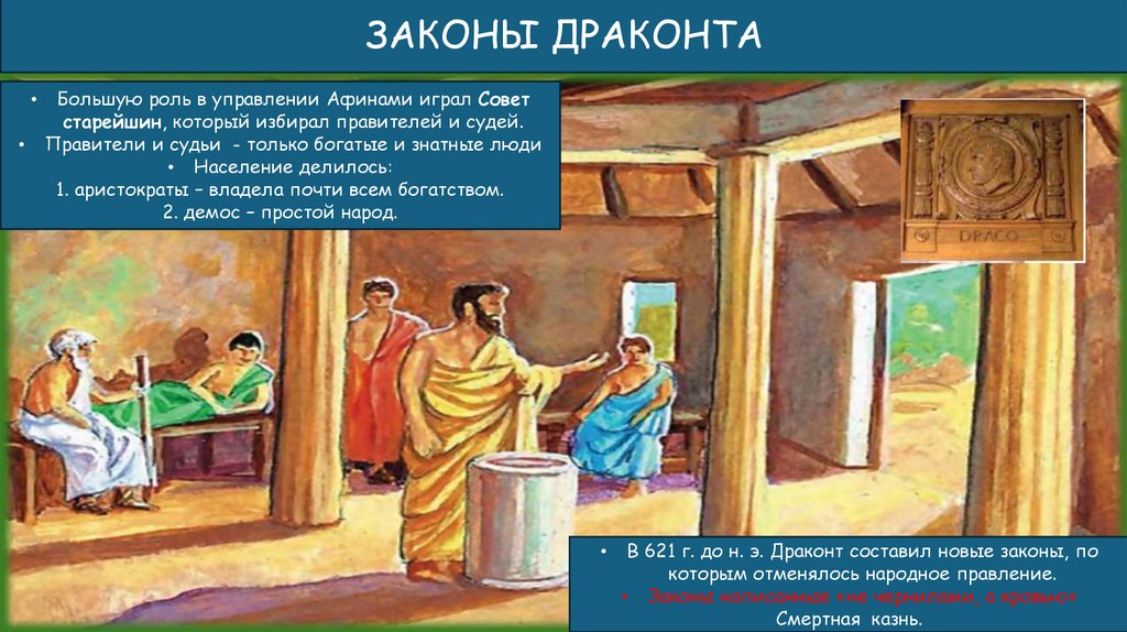 ЗАКОНЫ ДРАКОНТАБольшую роль в управлении Афинами играл Совет