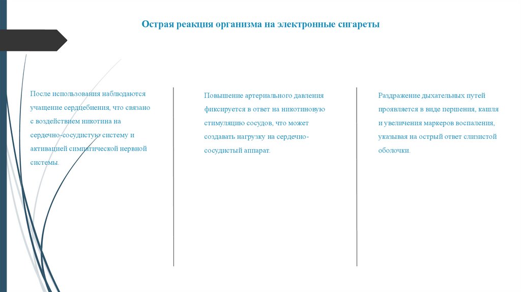 Острая реакция организма на электронные сигаретыПосле использования наблюдаются