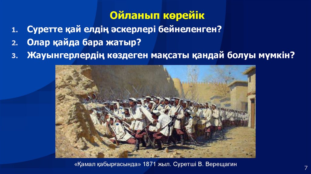 «Қамал қабырғасында» 1871 жыл. Суретші В. Верещагин