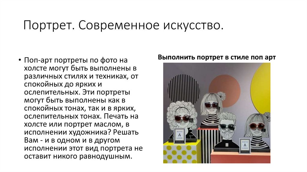 • Поп-арт портреты по фото нахолсте могут быть выполнены в