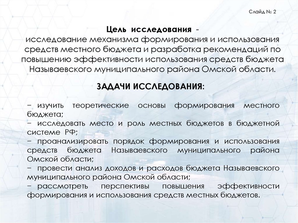 3. Предмет исследования – бюджет Называевского муниципального района Омской области в сфере формирования и исполнения местного