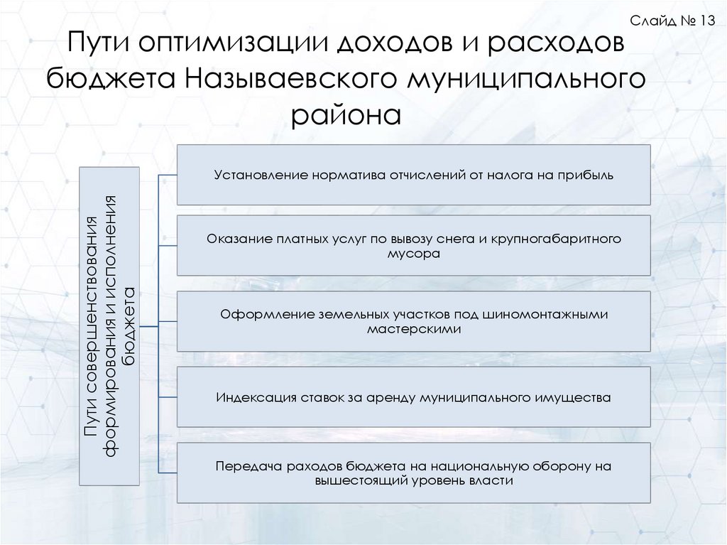 Слайд № 13Пути оптимизации доходов и расходов