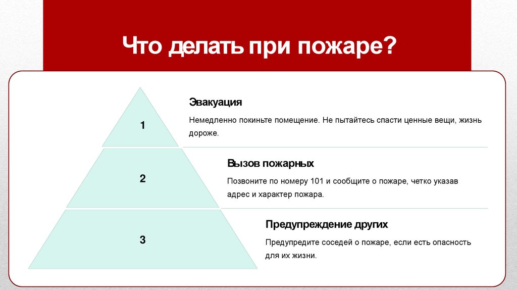 Немедленно покиньте помещение. Не пытайтесь спасти ценные вещи, жизнь
