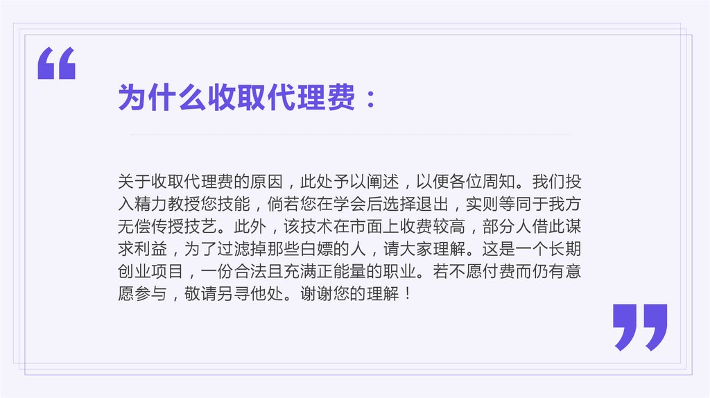 为什么收取代理费关于收取代理费的原因 此处予以阐述 以便各位周知。我们投