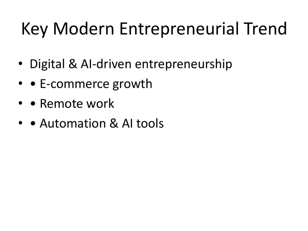 Key Modern Entrepreneurial Trend• Digital & AI-driven entrepreneurship