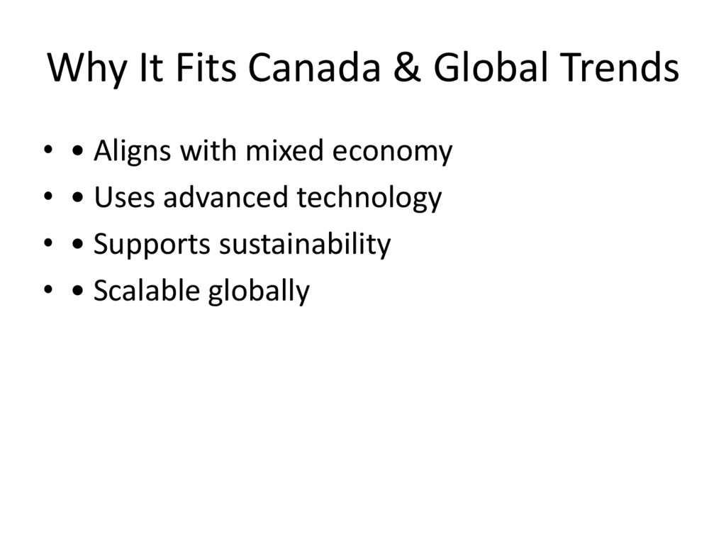 Why It Fits Canada & Global Trends• • Aligns with mixed economy